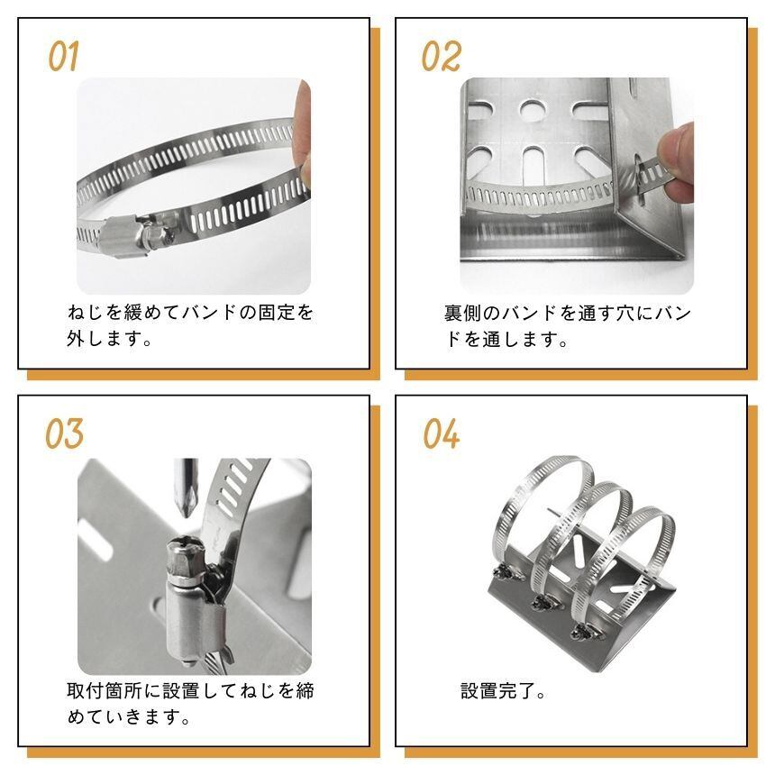 工具不要!付属のステンレスバンドで簡単固定