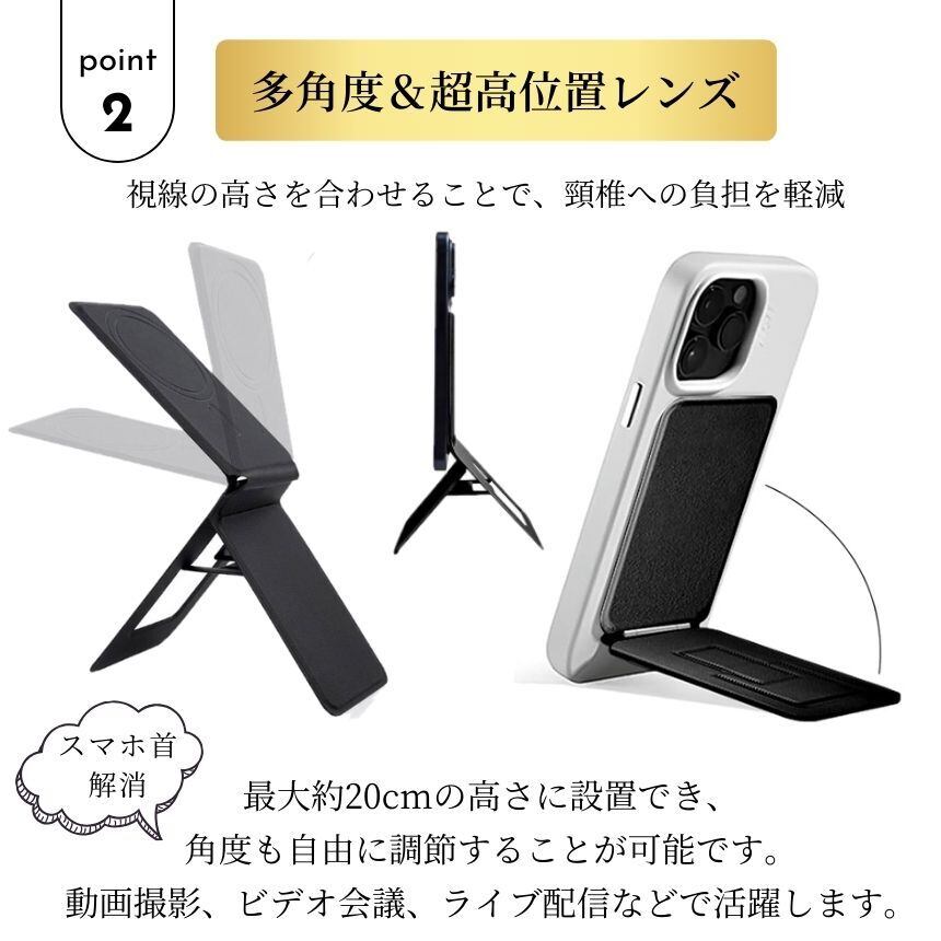 【 高さ/角度自由自在 】 スマホスタンド magsafe カードケース カード収納 マルチスタンド マグセーフ マグネット式 携帯スタンド 卓上 磁石 iPhone Android 薄型 スリム 折りたたみ 三脚 SNS 自撮り 撮影用 スマートフォン スタンド
