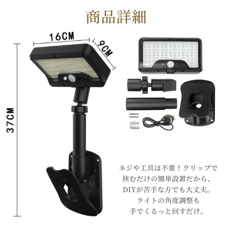 【 壁の穴あけ不要 】 ソーラーライト センサーライト 屋外 防水 明るい 人感 ガーデンライト クリップライト 人感センサーライト USB TYPE-C 充電式 クリップ ソーラーセンサーライト LEDライト パネル 人感センサー 防犯 ライト 防災 クリップ式 玄関 駐車場 庭 暖色 白色