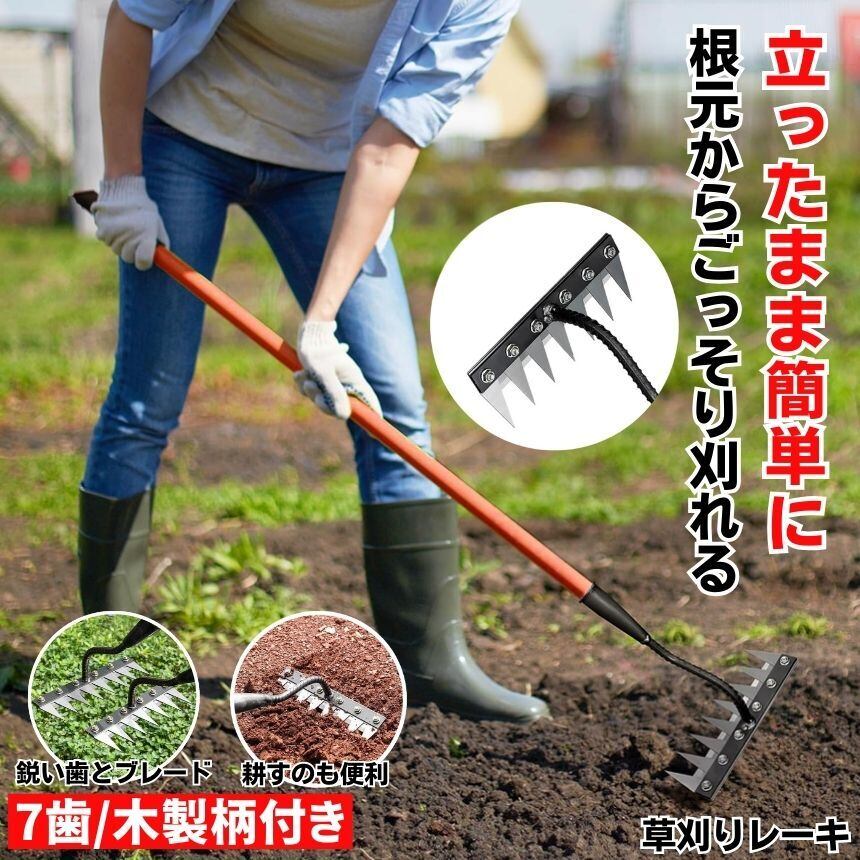 草取り 草刈り レーキ 草取り道具 草刈レーキ 根こそぎ 草取りレーキ 草取り器 草刈り道具 熊手 除草レーキ 除草 くわ 鍬 ステンレス 草刈り道具 立ったまま 雑草 雑草抜き ガーデニング 農業 畑 耕す くさかり くさとり 草むしり 草取 草刈 ガーデンレーキ 7歯木製柄付き
