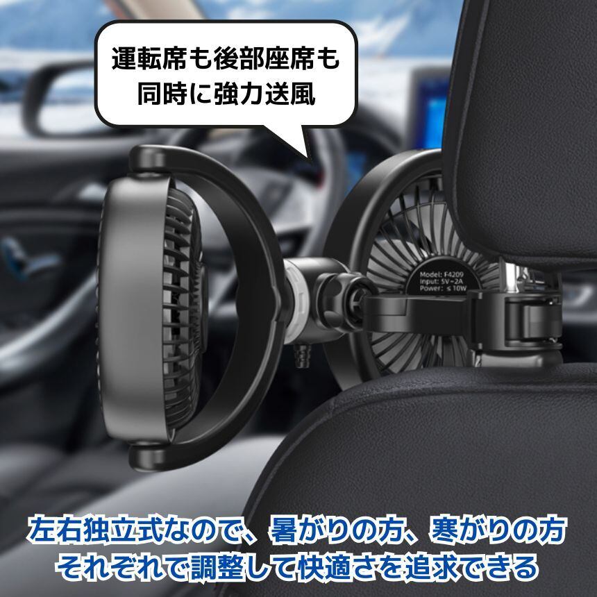 車 扇風機 後部座席 車載扇風機 扇風機 車用 ツインファン 車内扇風機 強力 低騒音 扇風機 車 エアコン 循環 車用扇風機 車中泊 後部座席 車ファン 角度調整可能 強風力 クーラー 3段階風量 USB給電 省エネ 夏 子供 熱中症 小型 背中 首もと