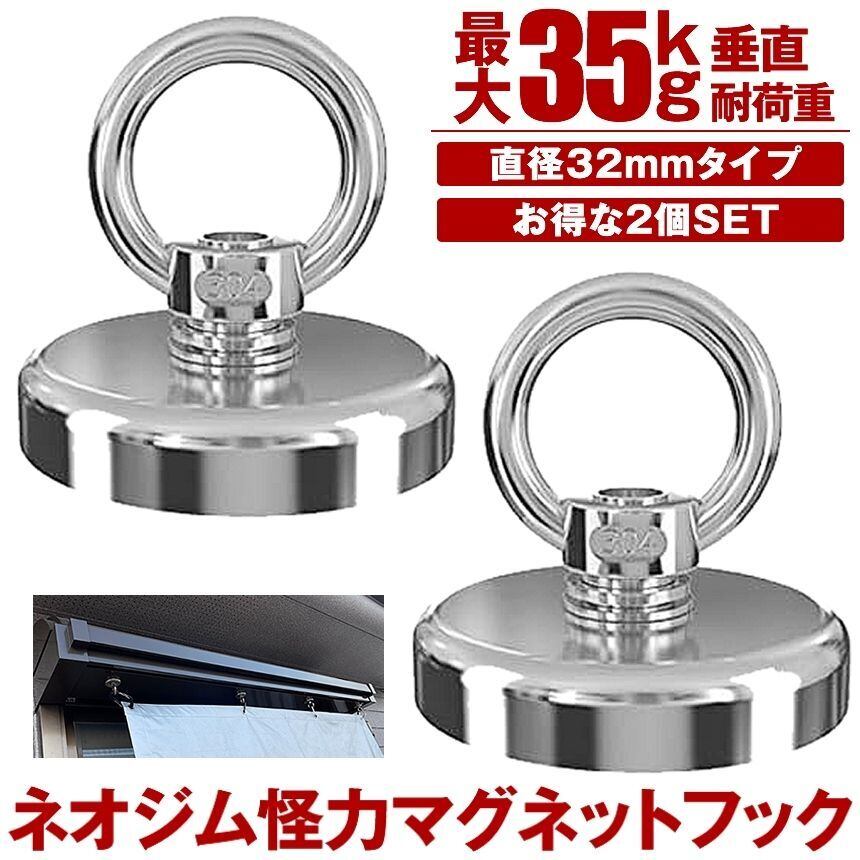 【 32mmタイプ2個セット 】 マグネット フック シェード 強力 マグネットフック 日よけ 日除け サンシェード オーニング ネオジム磁石 磁石 超強力 垂直耐荷重135kg お風呂 浴室 オフィス 収納 ラック キッチン 工具 吊り下げ アウトドア キャンプ カーサイドタープ