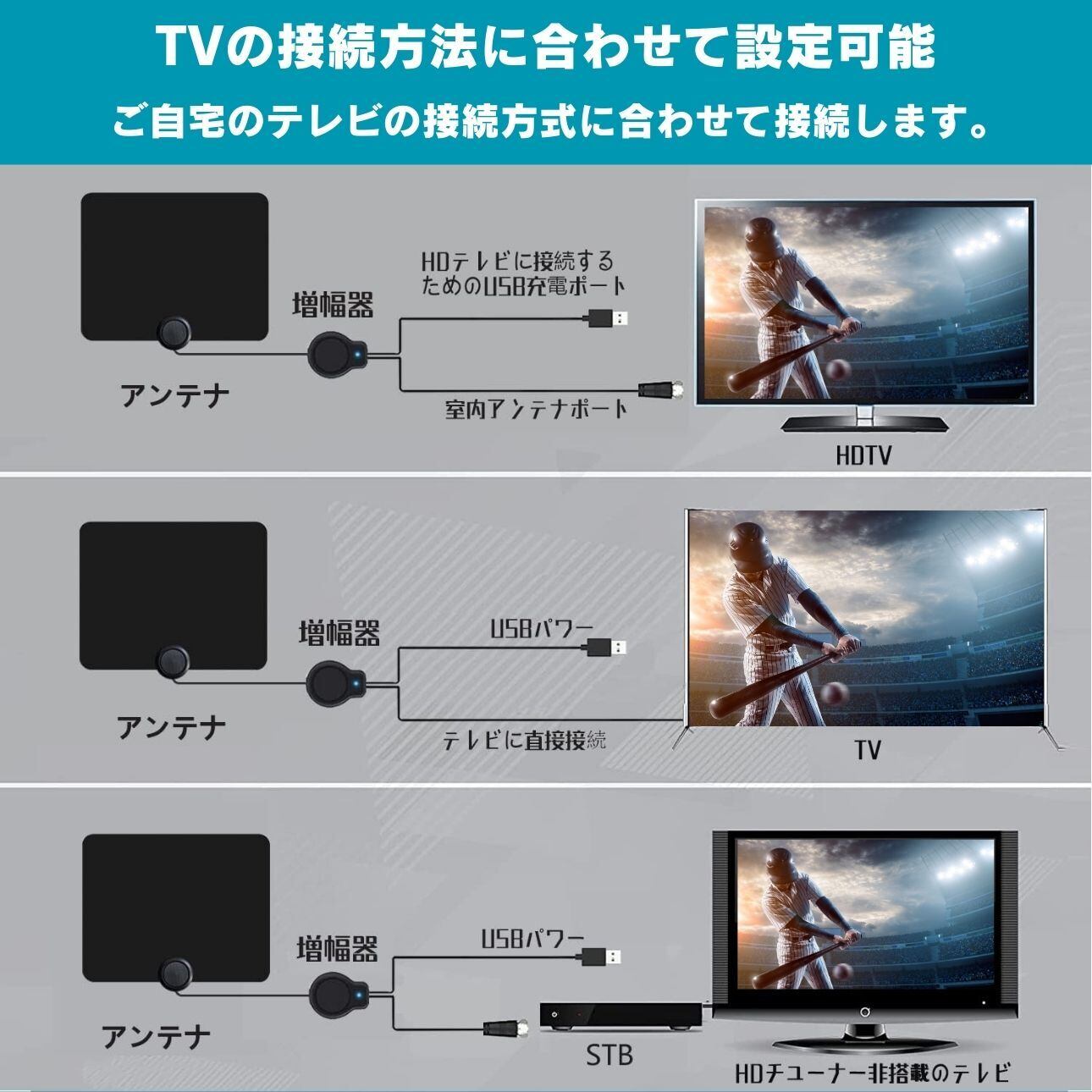 室内アンテナ テレビ ブースター TV 最強 テレビアンテナ テレビブースター 地デジアンテナ 地デジ 信号 ブースター内蔵 4K HD TV ワイヤレス化 450KM受信範囲 360度全方位受信 アンテナ 高感度 無料視聴 簡単接続 USB式 車載 固定 UHF VHF