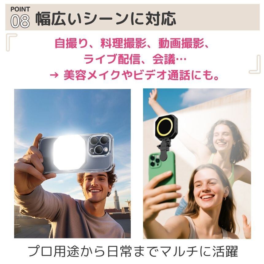 スマホ 撮影 ライト 自撮りライト 撮影用ライト MagSafe LED ミニ 小型 撮影ライト リングライト 配信用 クリップ 人物 自撮り 物撮り コードレス ライト 充電式 スマホ 撮影補助 明るい LEDライト 女優ライト ビデオ通話 化粧 YouTube 生放送