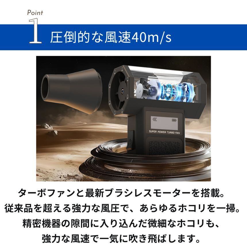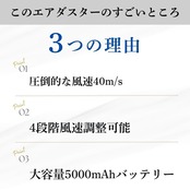 「40m/sの超強力ブロー力 × 5000mAhの大容量バッテリー × 軽量コンパクト」
