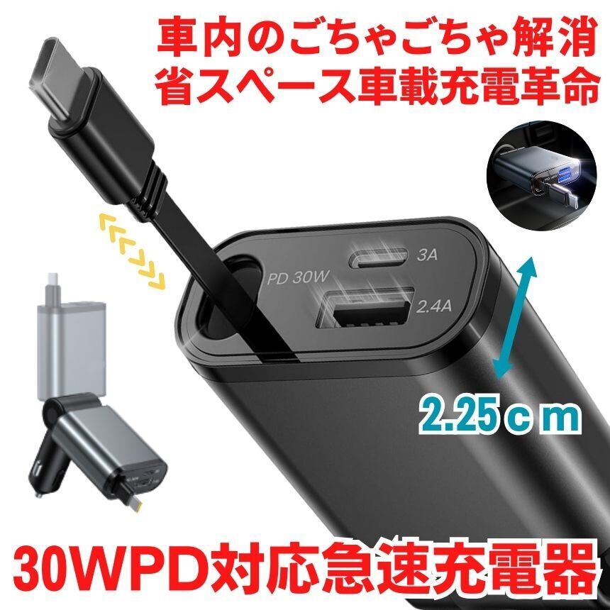 【小型でもパワフル!合計最大80Wの急速充電アダプター】<br>スマホやタブレットはもちろん、省電力ノートPCにも対応できるコンパクト急速充電器。合計出力は最大80Wですが、ポートの出力は最大30W。MacBook Airなど30W対応の省電力PCにはしっかり対応できますが、高出力を必要とする大型PC(MacBook ProやゲーミングPCなど)には非対応となります。用途を選ぶことで、日常使いから出張や旅行まで<br>幅広く活躍する安心設計です。<br><br>【巻き取り式ケーブルでスマートに】<br>本体には最大80cmまで伸びる巻き取り式PDケーブルを搭載。<br>必要なときにサッと伸ばせて、使い終わったらコンパクトに収納可能。<br>カバンの中でケーブルが絡まる心配がなく、車内やデスク周りでもスッキリした<br>環境を保てます。ケーブルを別に持ち歩かなくて良いので、<br>外出時の荷物を減らせるのも大きなメリットです。<br><br>【3台同時充電で効率アップ】<br>USB-C×2ポート、USB-A×1ポートを搭載し、スマホ・タブレット・イヤホンなどを同時に急速充電可能。30W対応の省電力ノートPCも充電できるため、ビジネスシーンや旅行中でも安心です。家族や同僚とシェアしても、効率よく電力を分配できるので<br>「誰かが充電待ち」という状況を防げます。<br><br>【小型・軽量で持ち運びやすい】<br>手のひらサイズで軽量設計。バッグやポーチに入れても邪魔にならず、<br>毎日の持ち歩きや出張・旅行に最適です。コンパクトながらパワフルな出力を<br>備えているため、外出先でも安心。<br>デスクやコンセント周りの省スペース化にも役立ちます。<br><br>【安心の多重保護機能】<br>内蔵のスマートチップが過電流保護・過電圧保護・短絡保護を実現。<br>異常を検知すると自動的に電流を遮断し、デバイスと充電器を守ります。<br>長時間の使用や複数台充電時でも安全性を確保できるため、毎日の充電に安心してお使いいただけます。<br><br>【こんな方におすすめ】<br><br>出張や旅行用に小型で便利な充電器を探している方<br><br>ケーブル込みでコンパクトに持ち歩きたい方<br><br>30W対応のノートPCを外出先で充電したい方<br><br>車内をスッキリ整理したい方<br><br>複数デバイスを同時に効率よく充電したい方<br><br>【まとめ】<br>合計最大80Wの出力で、スマホやタブレットに加え、省電力ノートPCの充電にも対応可能。巻き取り式ケーブルを搭載した小型デザインで、持ち運びや収納にも便利。安心の多重保護機能付きで、毎日の充電から出張や旅行まで活躍する、理想のコンパクト急速充電器です。<br><br>送料無料