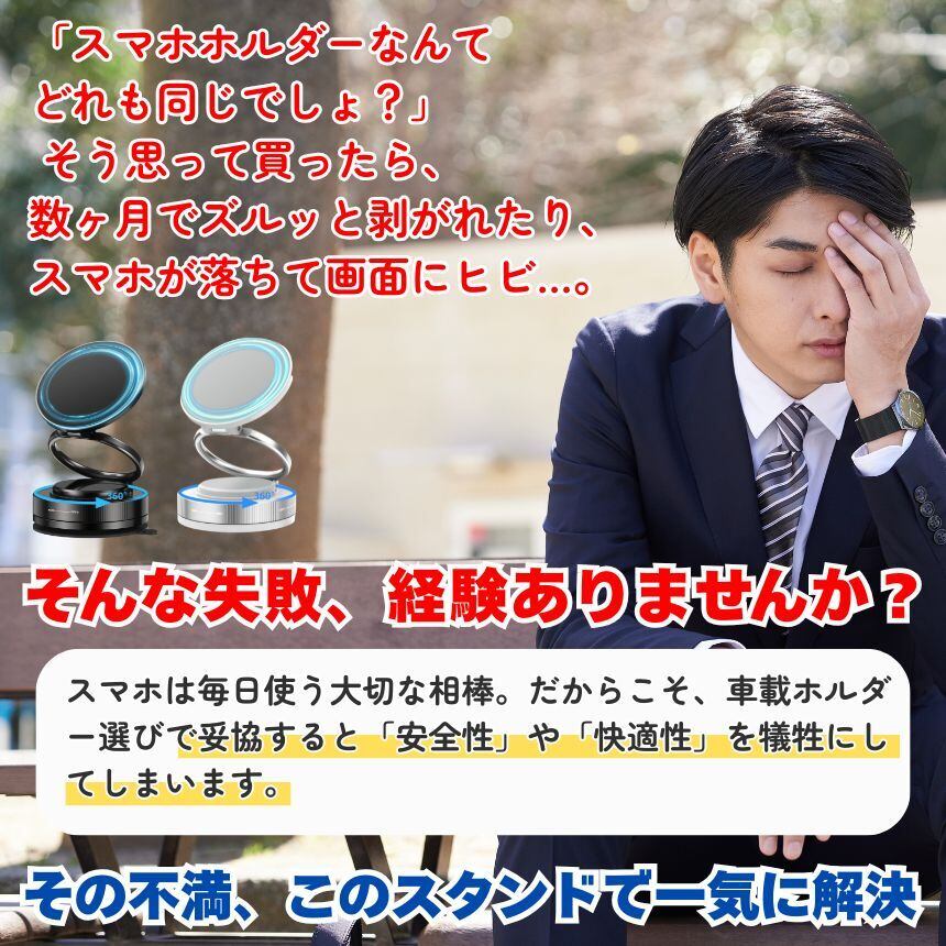 これまでの吸盤式や粘着式スタンドでは、こうした小さな不満が積み重なりがちです。