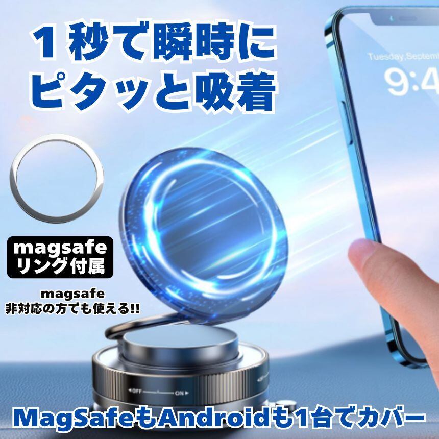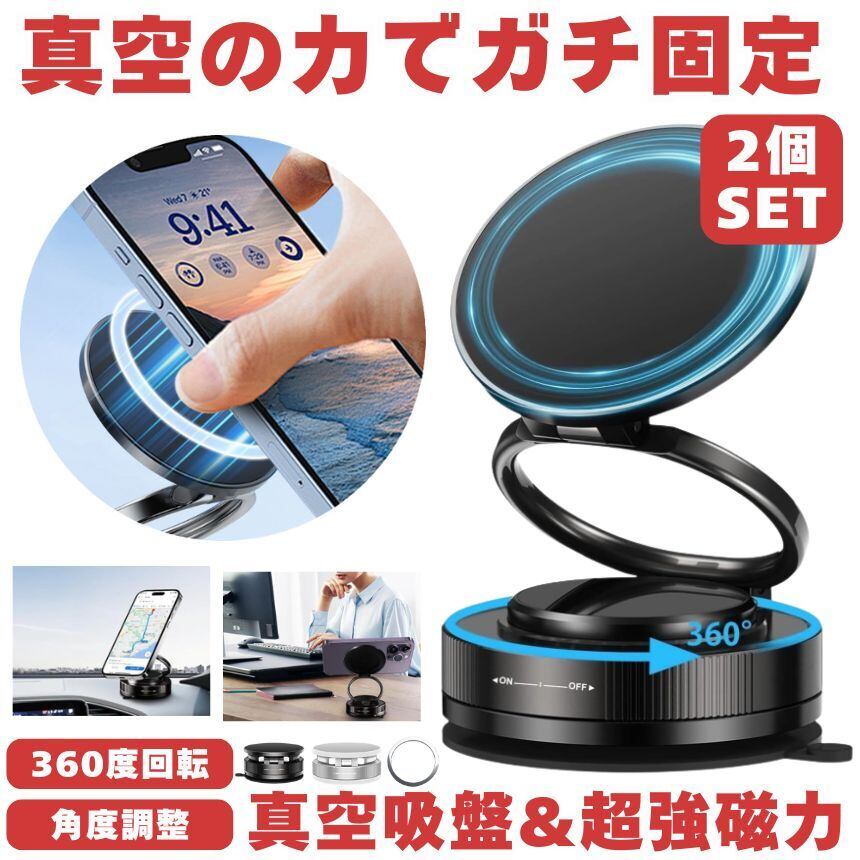 【 2個セット 】 スマホスタンド 車 マグネット 真空吸着式 スマホ ホルダー 車用 携帯スタンド 車載 ホルダー 吸盤 磁石 Android iPhone スマホホルダー スマートフォン 固定 車載ホルダー マウント 車載スタンド アームスタンド 360度回転 Magsafe マグセーフ