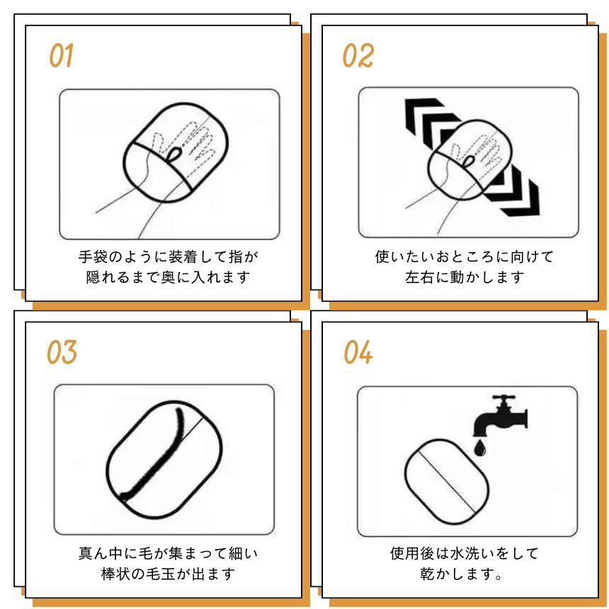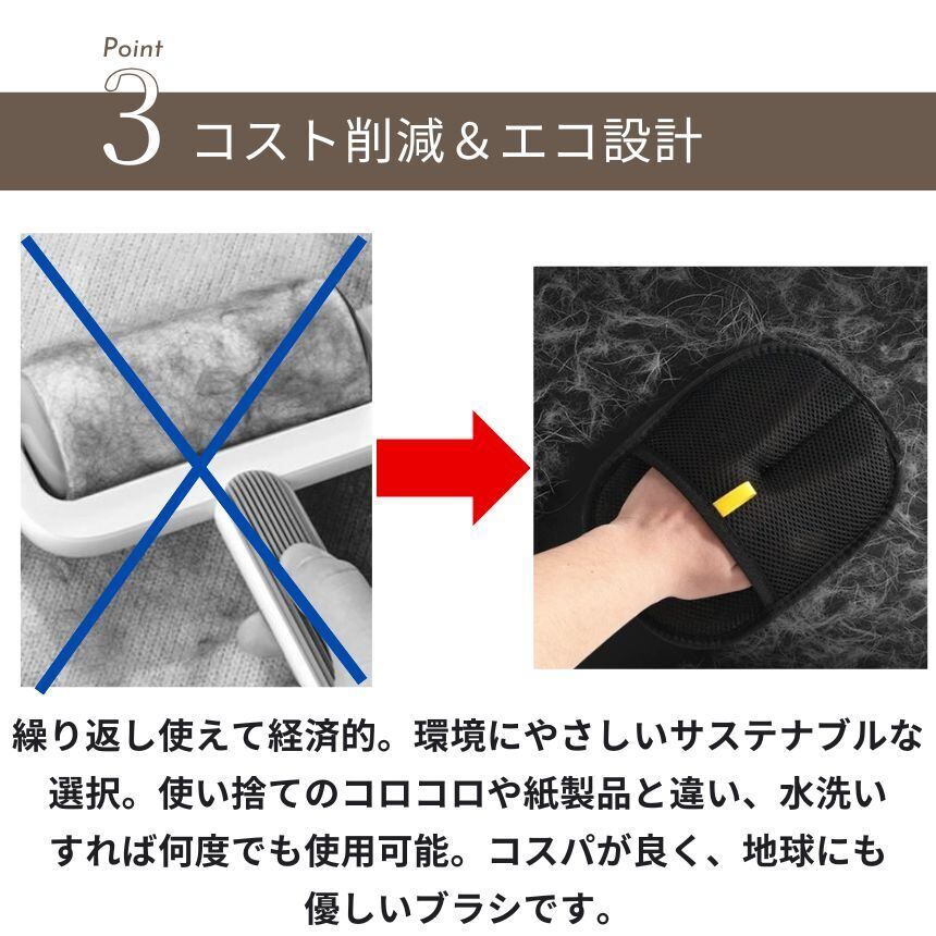 静電気効果で細かい毛まで除去 → 掃除機いらずの手軽さ