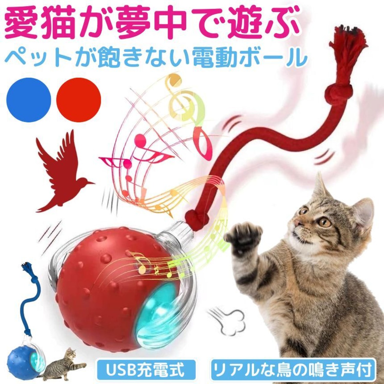 【自動で動く】 ネコ 猫 おもちゃ 電動 自動 鳥 ボール 犬 一人遊び 動くおもちゃ 鳴き声付 さえずり 室内 USB充電式 ペット ダイエット 運動不足 解消 LEDライト付き 尻尾付き しっぽ ひも Type-C ストレス解消