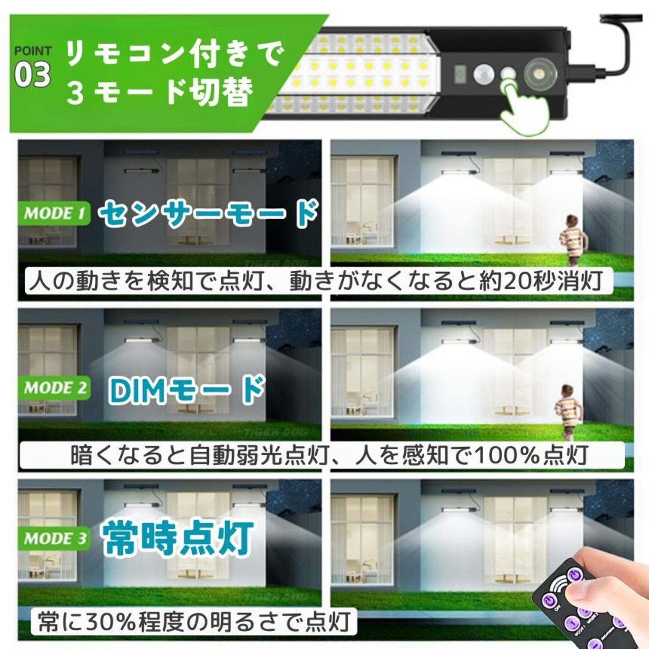 ソーラーライト 屋外 防水 人感 センサーライト リモコン ガーデンライト ソーラーセンサーライト 分離型 分離 パネル 防犯ライト 防災ライト 人感センサーライト 158 LED 3モード太陽光発電 送料無料 防災 作業灯 キャンプ 壁掛け 庭 玄関 ガーデン 駐車場 地震 停電