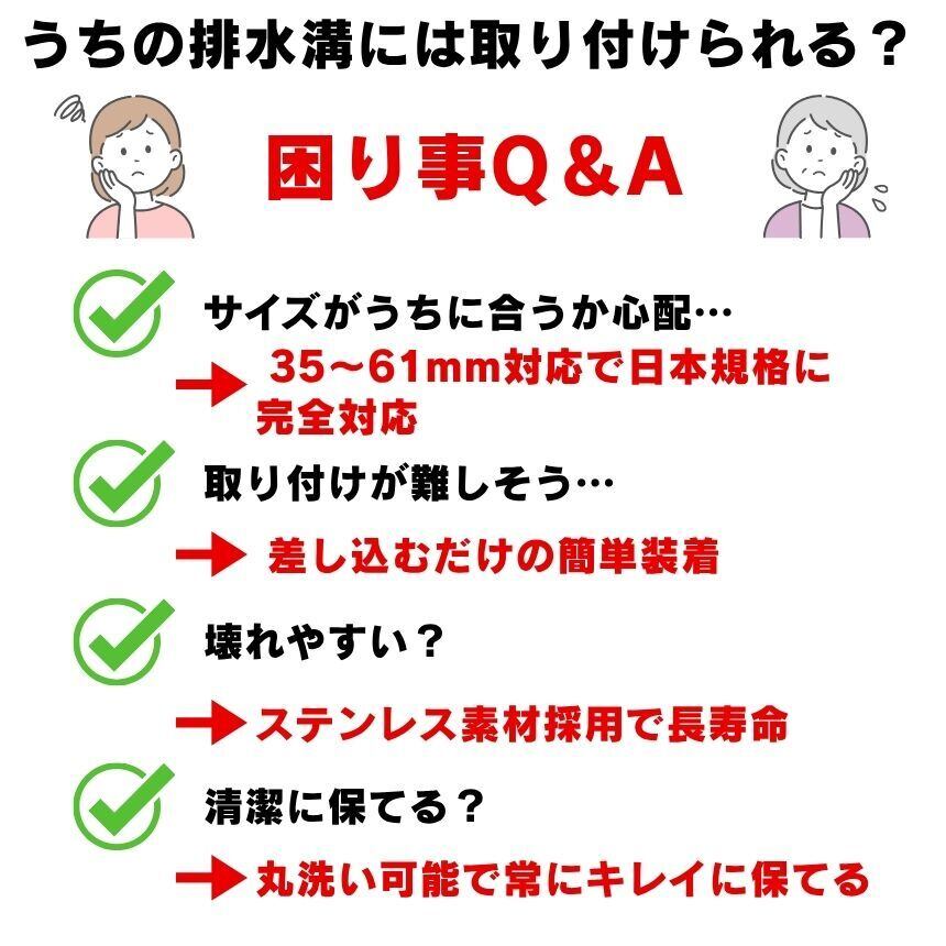 → 35~61mm対応で、ほとんどの排水口にフィット。
