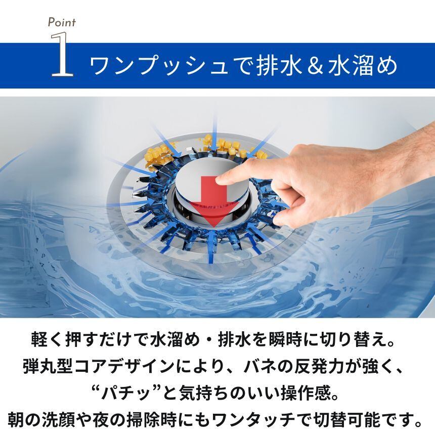排水口の詰まり防止とワンタッチ開閉を同時に実現。