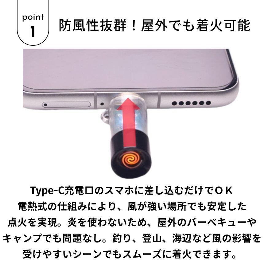電子ライター usbライター 電子 ライター 電気 Type-C コイル 電気ライター USB 線香 着火マン スマホ 防風 アウトドア 電熱 タバコ 煙草 着火 焚き火 火おこし 火起こし 小型 ライト 小型ライター 風よけライター キーホルダー 持ち運び 軽量