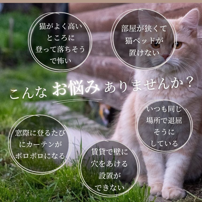 窓際の高い位置に取り付ければ、猫ちゃんは大好きな外の景色を見ながらリラックス。