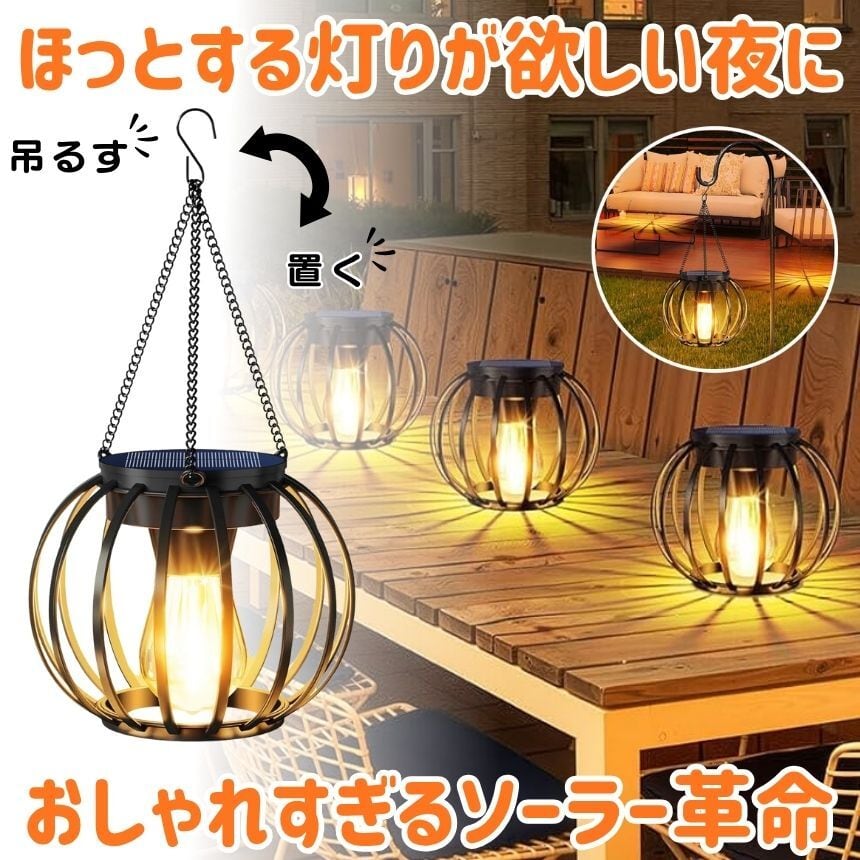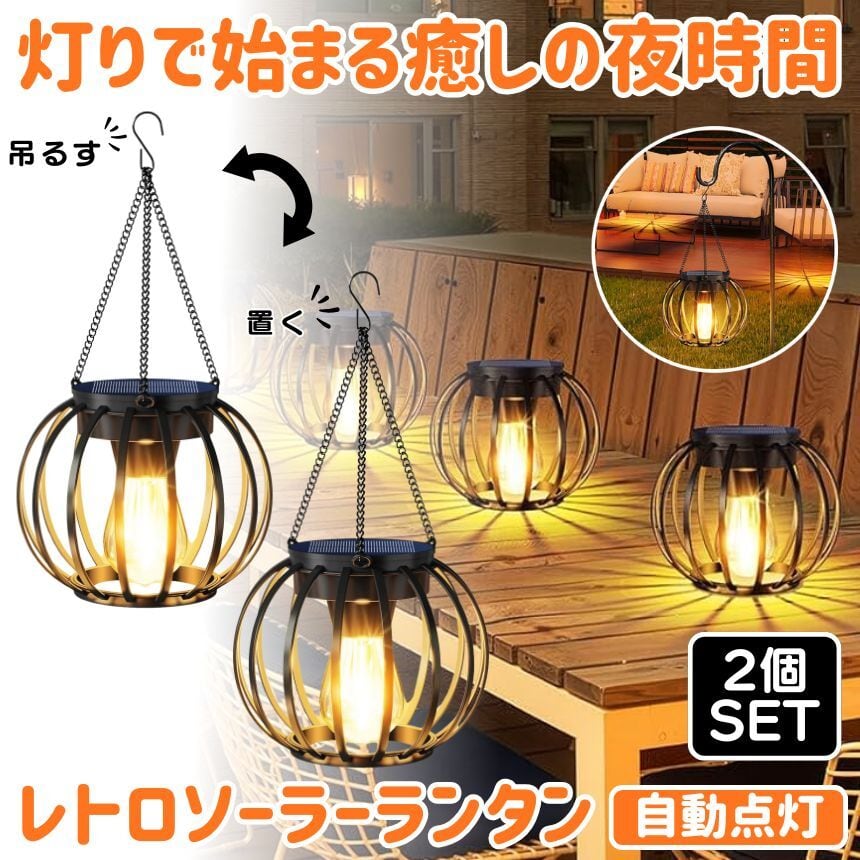 2個セット ソーラーランタン ガーデンライト ソーラーライト 屋外 防水 ソーラー イルミネーション ランタン おしゃれ ソーラーライト 屋外 吊り下げ アンティーク レトロ 防水 かわいい LED 庭 照明 電球色 ガーデニング 新生活 間接照明 インテリア