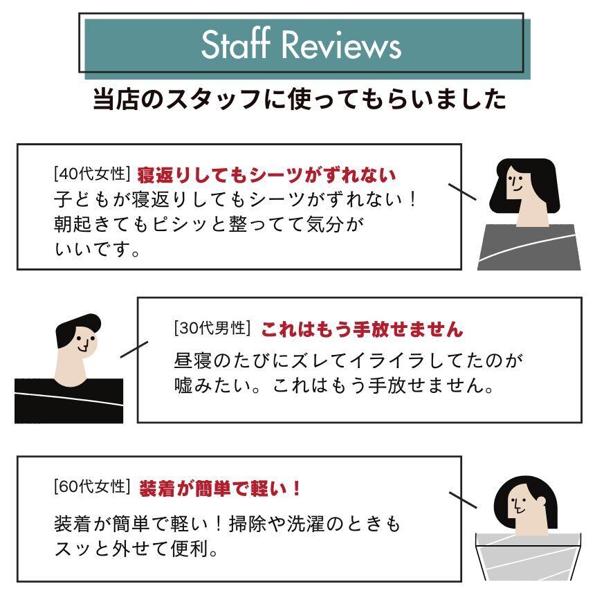 「今まで朝起きるとシーツが丸まっていたのに、これを使ってから全くズレません!」