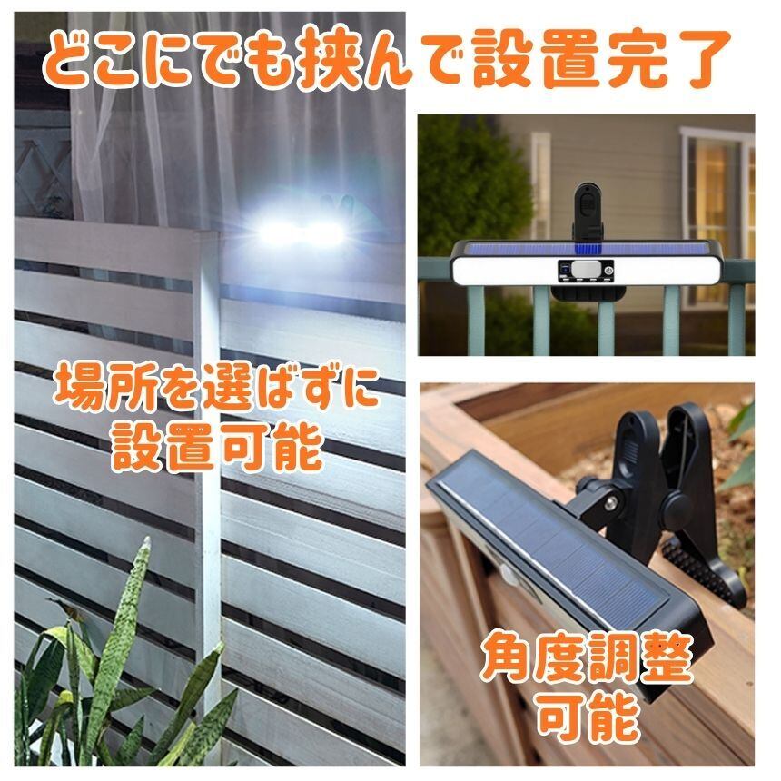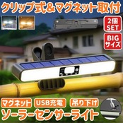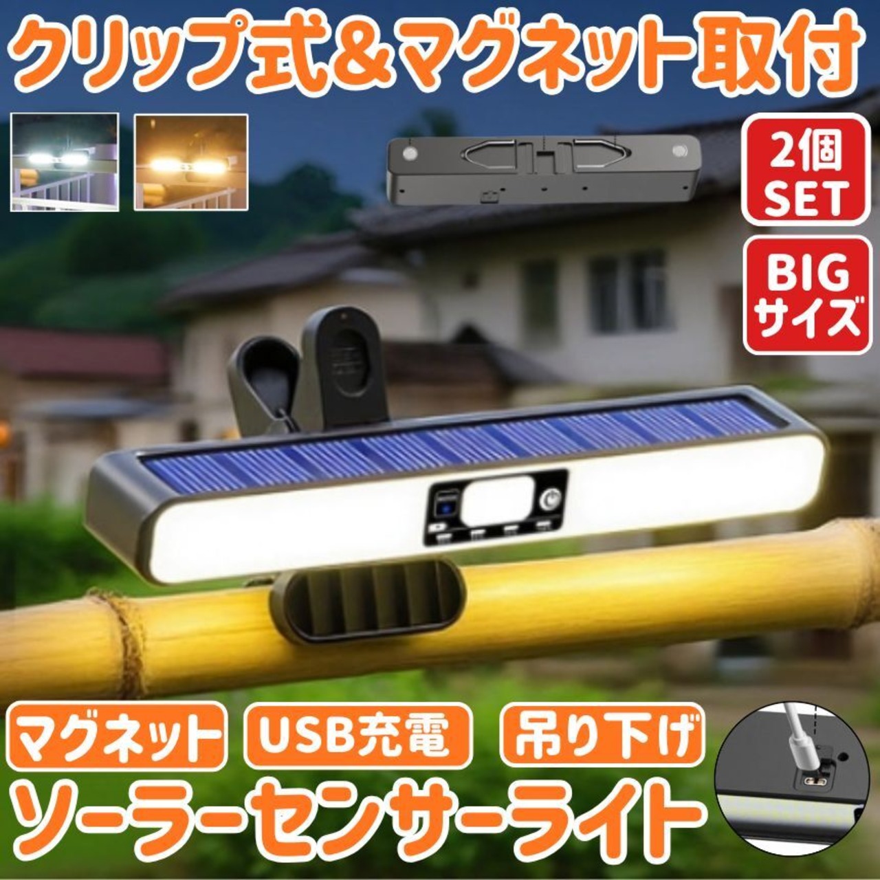 【 2個セット 】 ソーラーライト 屋外 防水 クリップ センサーライト ソーラーセンサーライト マグネット 磁石 明るい ガーデンライト クリップライト 人感センサーライト USB 充電式 フック 吊り下げ 照明 防犯 ライト 防災 駐車場 庭 暖色 白色