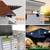 クリップ・マグネット・吊り下げの3WAY設置で、玄関・庭・ベランダ・車庫・キャンプなど、あらゆる場所に簡単に取り付けられる新発想のソーラーライトです。