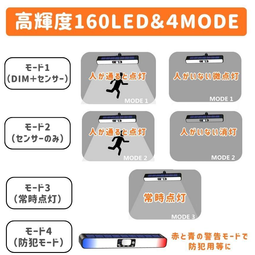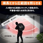 人感センサー4モード搭載(常灯/人感点灯+微光/人感点灯+消灯/防犯赤青点滅)。