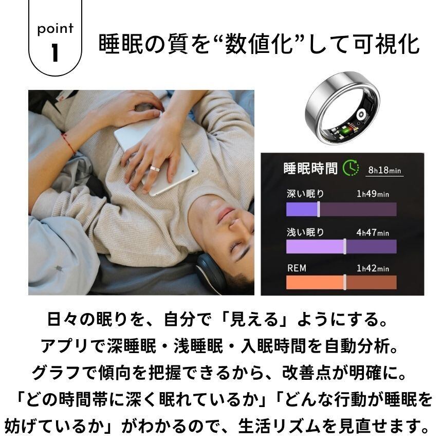 このスマートリングは、最新の睡眠解析アルゴリズムを搭載。