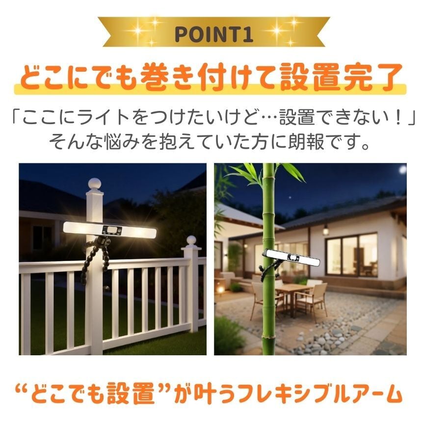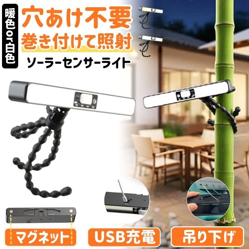 【 巻き付ける 】 ソーラーライト センサーライト 屋外 防水 ソーラー 人感 ガーデンライト ソーラーセンサーライト マグネット 磁石 吊り下げ 太陽光 ライト 人感センサーライト USB TYPE-C 充電式 フレキシブル 防犯 ライト 防災 キャンプ アウトドア 玄関 駐車場