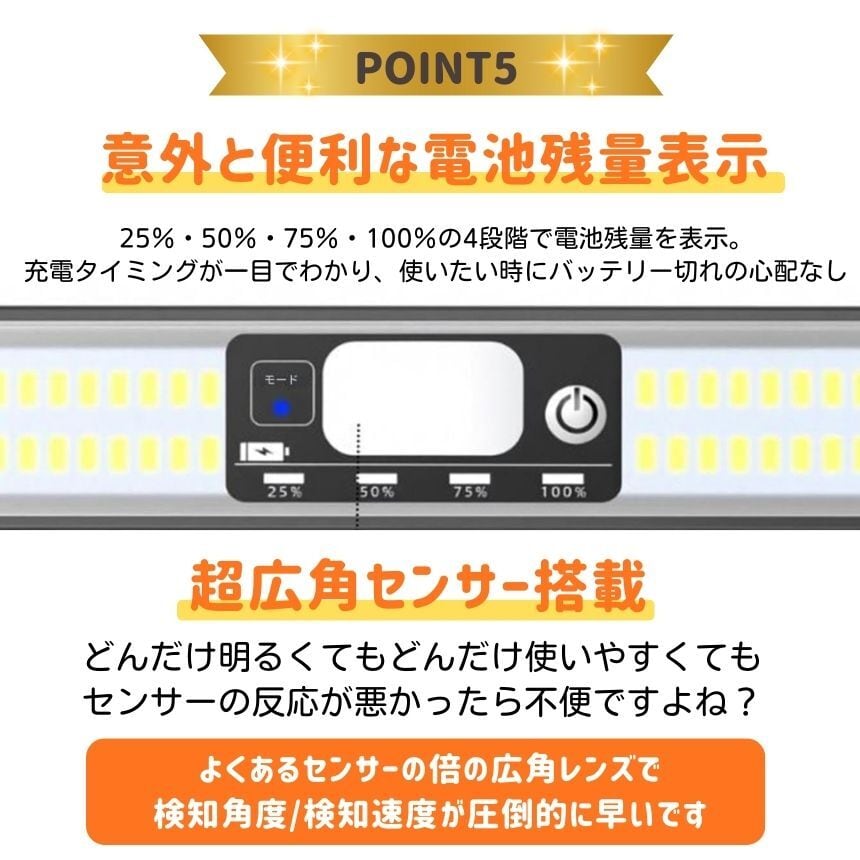 ソーラー&USB充電の“ハイブリッド式”だから、太陽光でも室内充電でも使えて常に安心。玄関・ガレージ・庭・アウトドア・災害対策に最適な1台です。