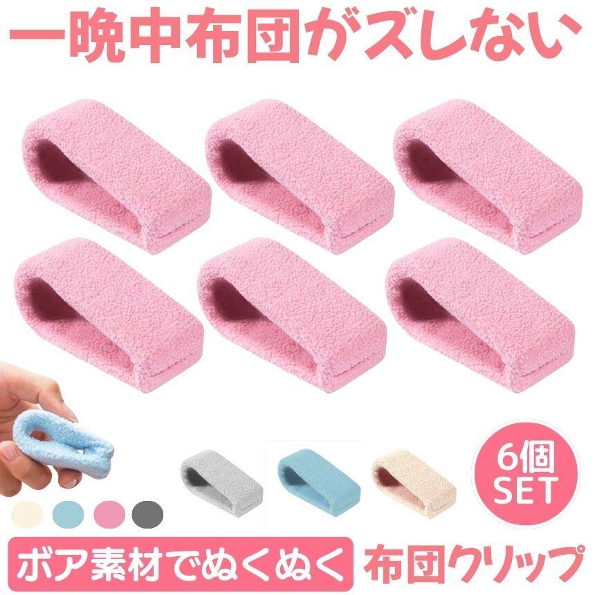 布団クリップ ボア素材 針なし 固定クリップ 同色6個セット