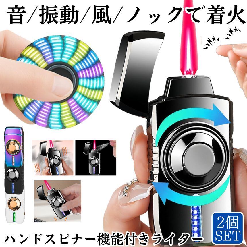 【2個セット】 ライター ガス プレゼント おもしろ 電子ライター usb 充電式 電子 ハンドスピナー 電気 Type-C オイルライター 電気ライター USB 線香 着火マン 防風 アウトドア ガス タバコ 煙草 火おこし 火起こし ライト 小型ライター 音 振動 揺れ 持ち運び 軽量