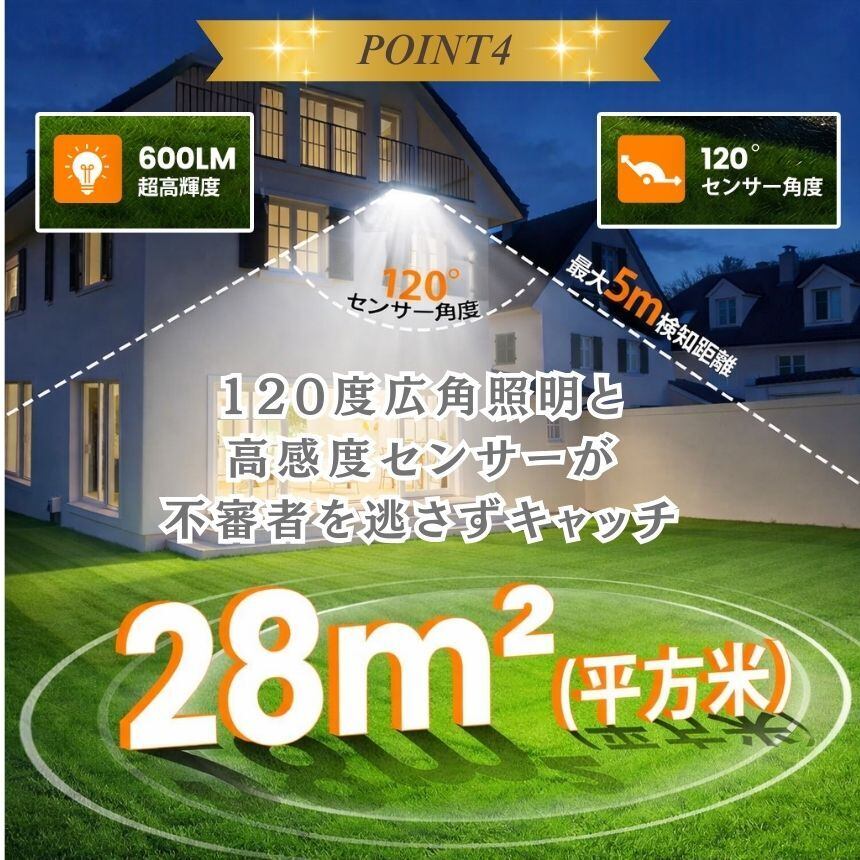 センサー範囲: 120° / 約5m以内