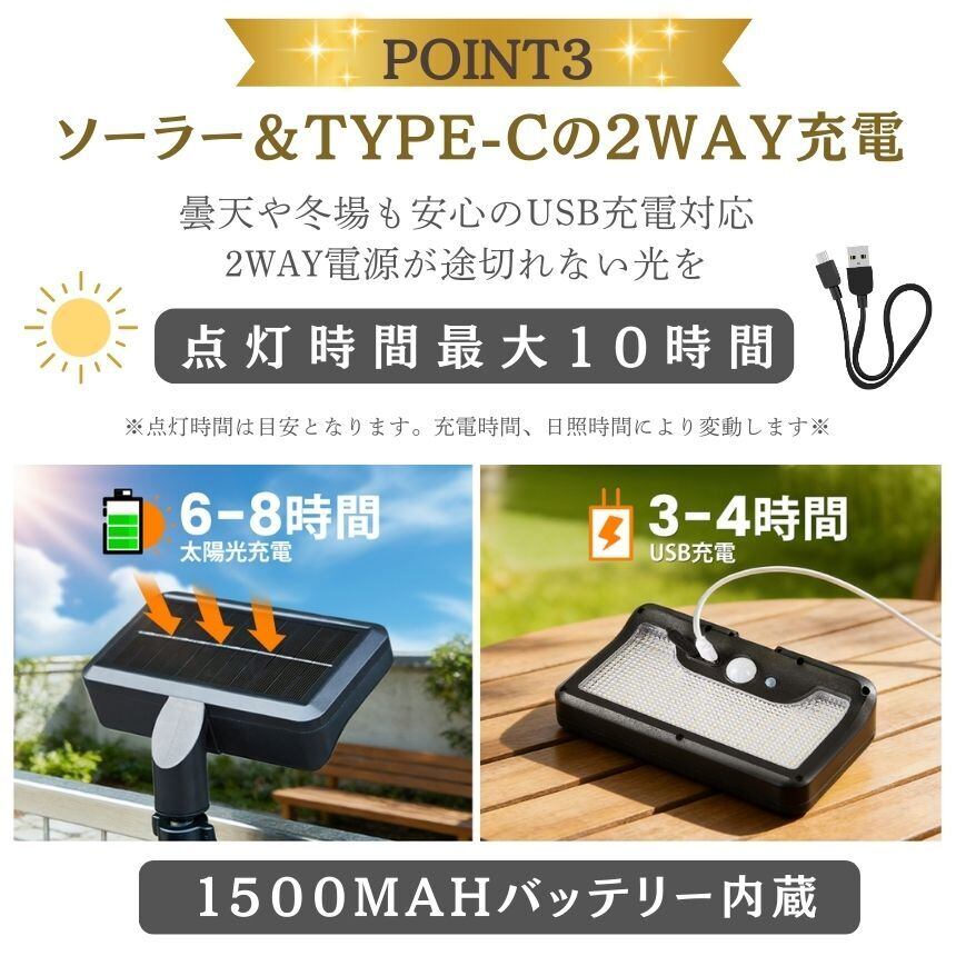 2WAY充電 ソーラーライトの弱点だった「雨天時の充電不足」を解消!