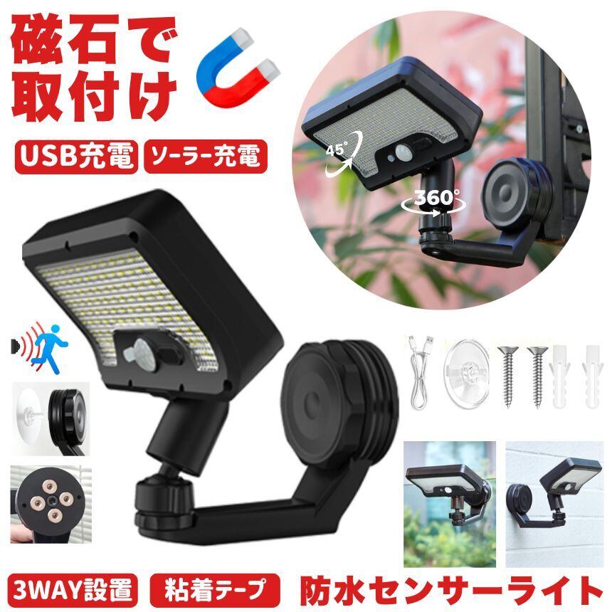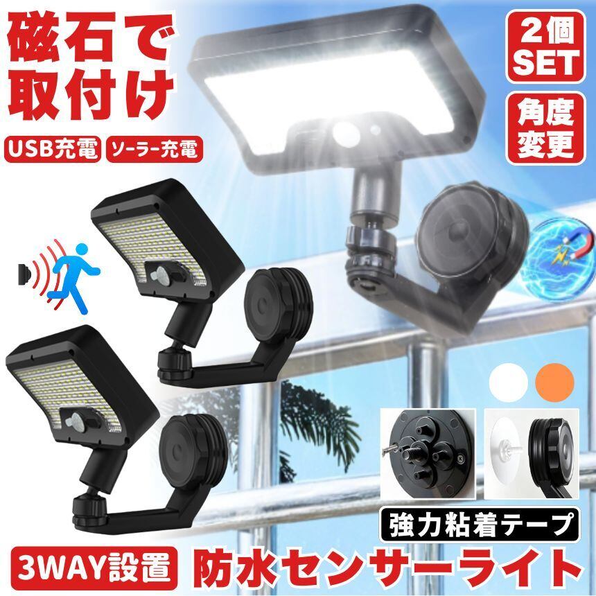 2個セット 【 マグネット付 】 センサーライト ソーラーライト 屋外 防水 リモコン ガーデンライト マグネット 磁石 粘着テープ ソーラーセンサーライト 防犯ライト 防災ライト 人感センサーライト 92LED LED3モード太陽光発電 玄関灯 広角 駐車場 明るい 人感センサー