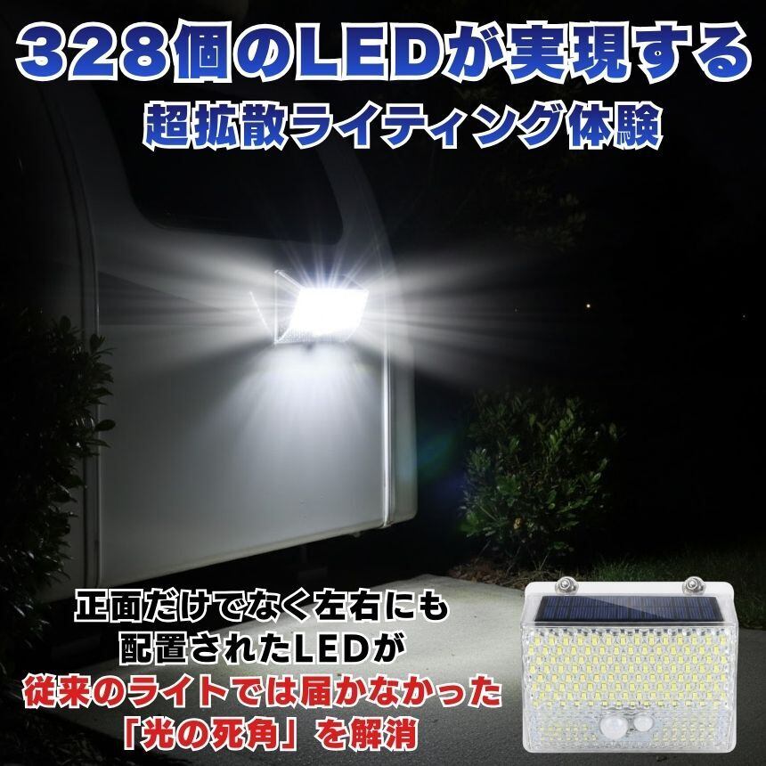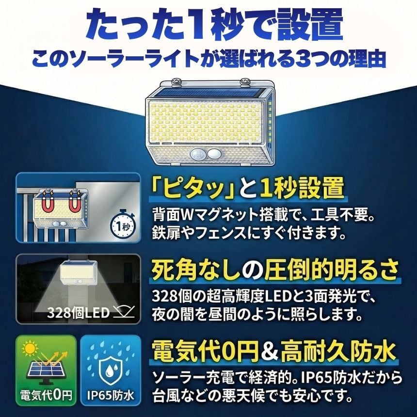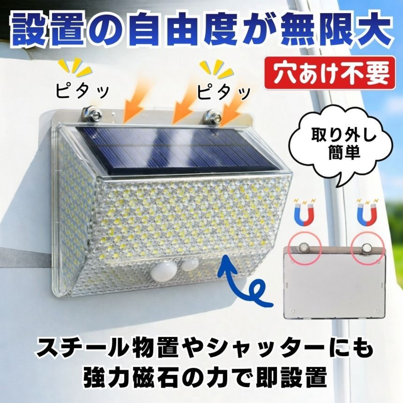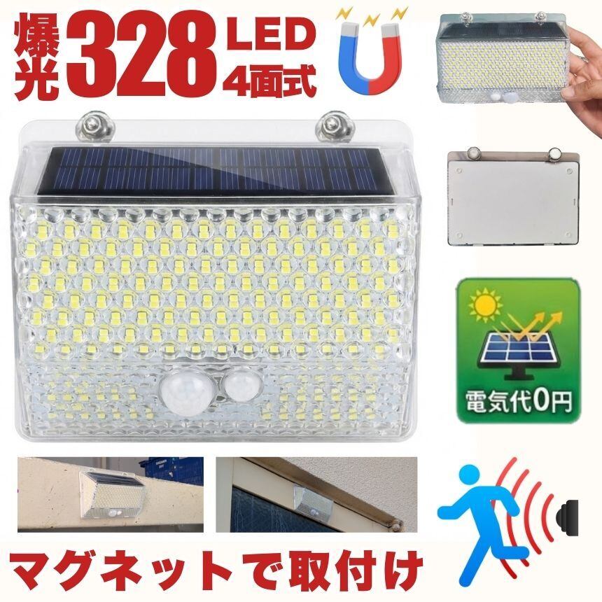 工事不要!マグネットでペタッ!328LED&3面発光ソーラーセンサーライト