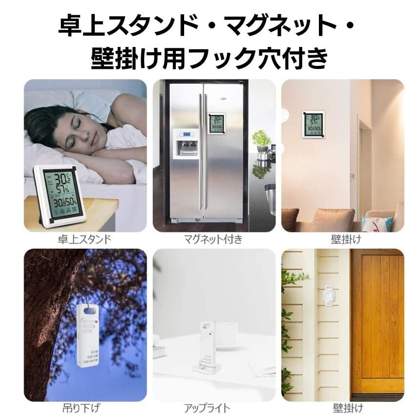 【離れた場所も測定】 温度計 湿度計 デジタル ワイヤレス おしゃれ 屋外 外気温度計 室温計 屋外温度計 室内 室外 温度湿度計 高精度 気温計 室内外温度計 子機 3個付き バックライト 卓上 マグネット 壁掛け フック