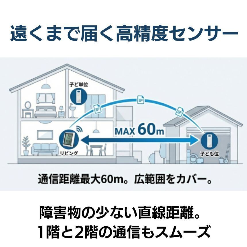 離れた場所の温度・湿度を同時に測定でき、