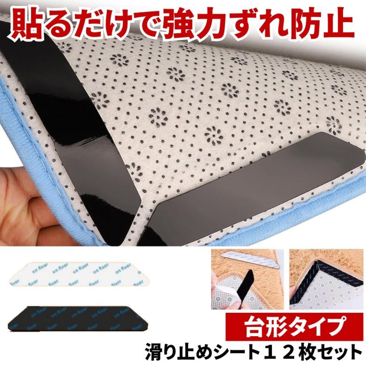 マットやカーペットの裏に貼るだけ。