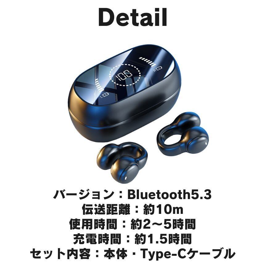 ワイヤレスイヤホン イヤホン bluetooth 耳を塞がない ワイヤレス イヤーカフ イヤフォン 軽量 小型 Type-C 充電 コンパクト ブルートゥース スマホ イヤホンワイヤレス ワイアレスイヤホン ランニング 運動 通勤 睡眠 会議 就寝 トレーニング 耳をふさがない