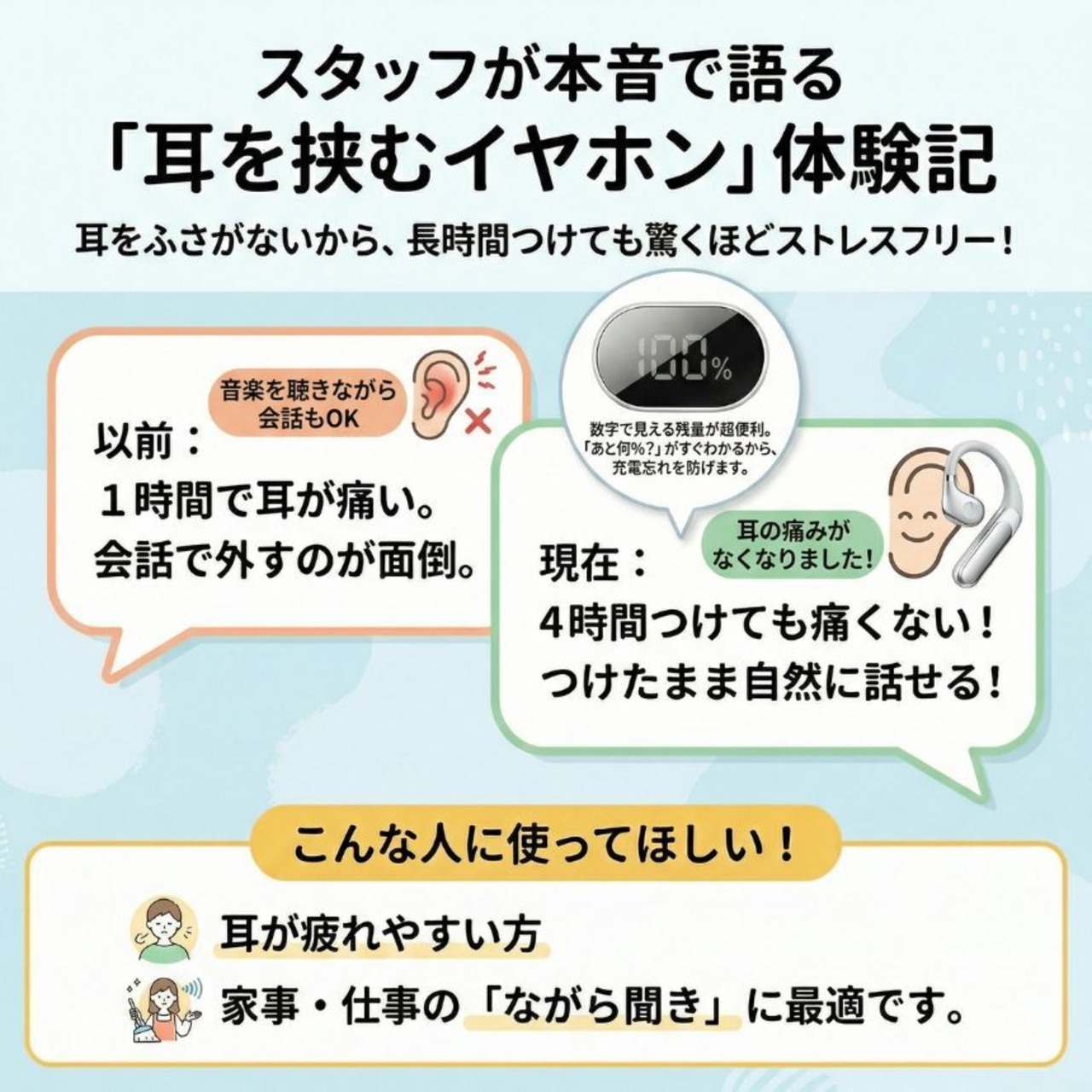 「イヤホン疲れ」を感じていた方から支持されています。