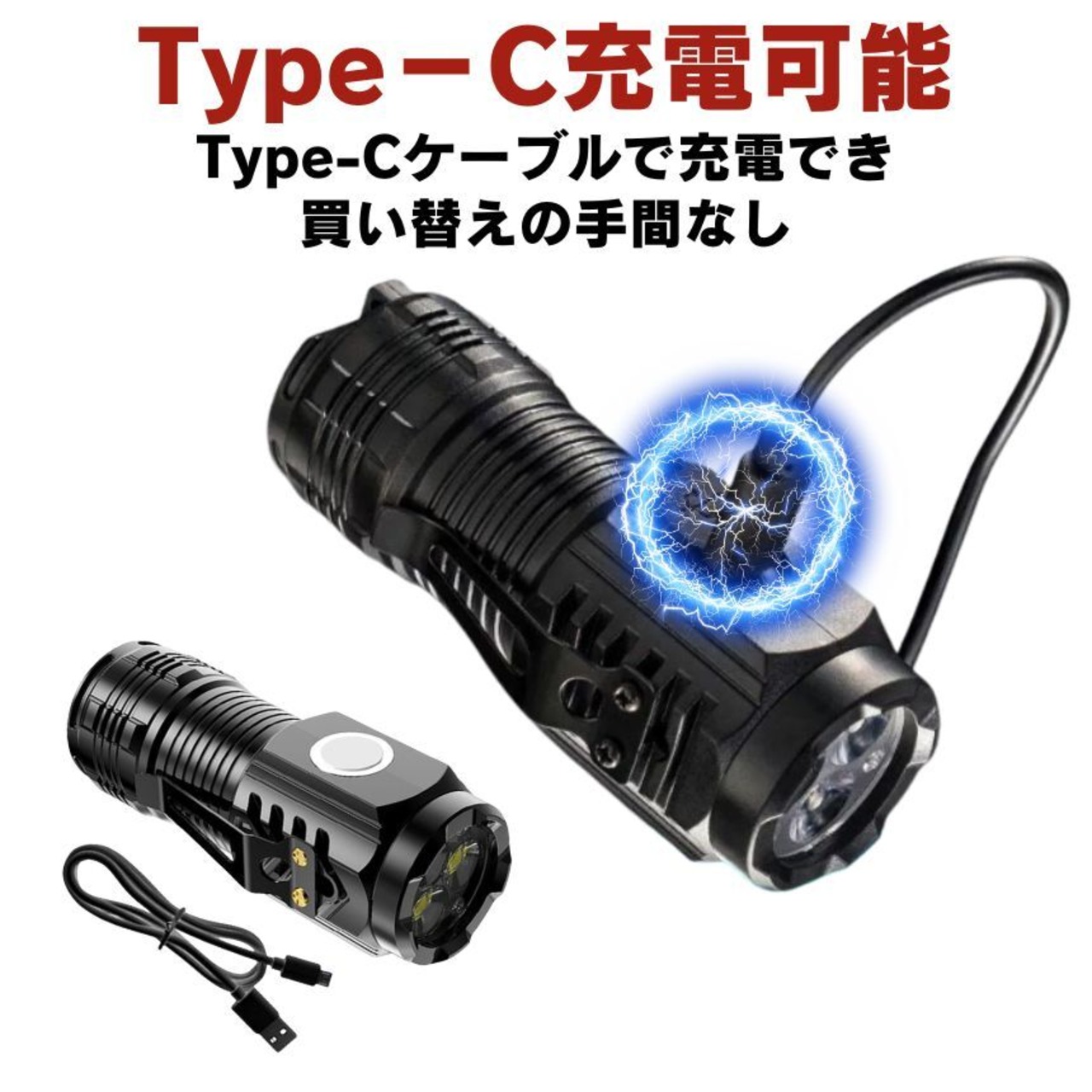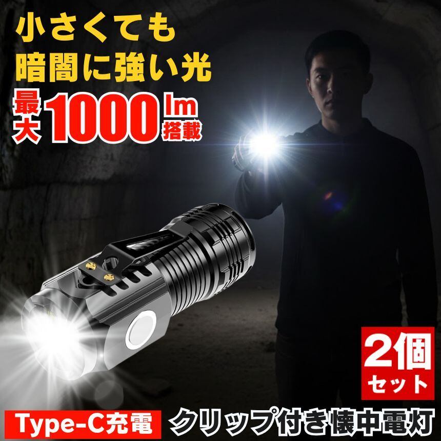 2個セット 懐中電灯 ハンディライト led ライト 充電式 最強 ハンディ高輝度 クリップライト USB TYPE-C 充電式 ハンドライト フラッシュライト 作業 小型 軽量 キャップライト ヘッドライト キャップ 帽子 アウトドア ワーク ウォーキング キャンプ ジョギング 夜釣り 釣り