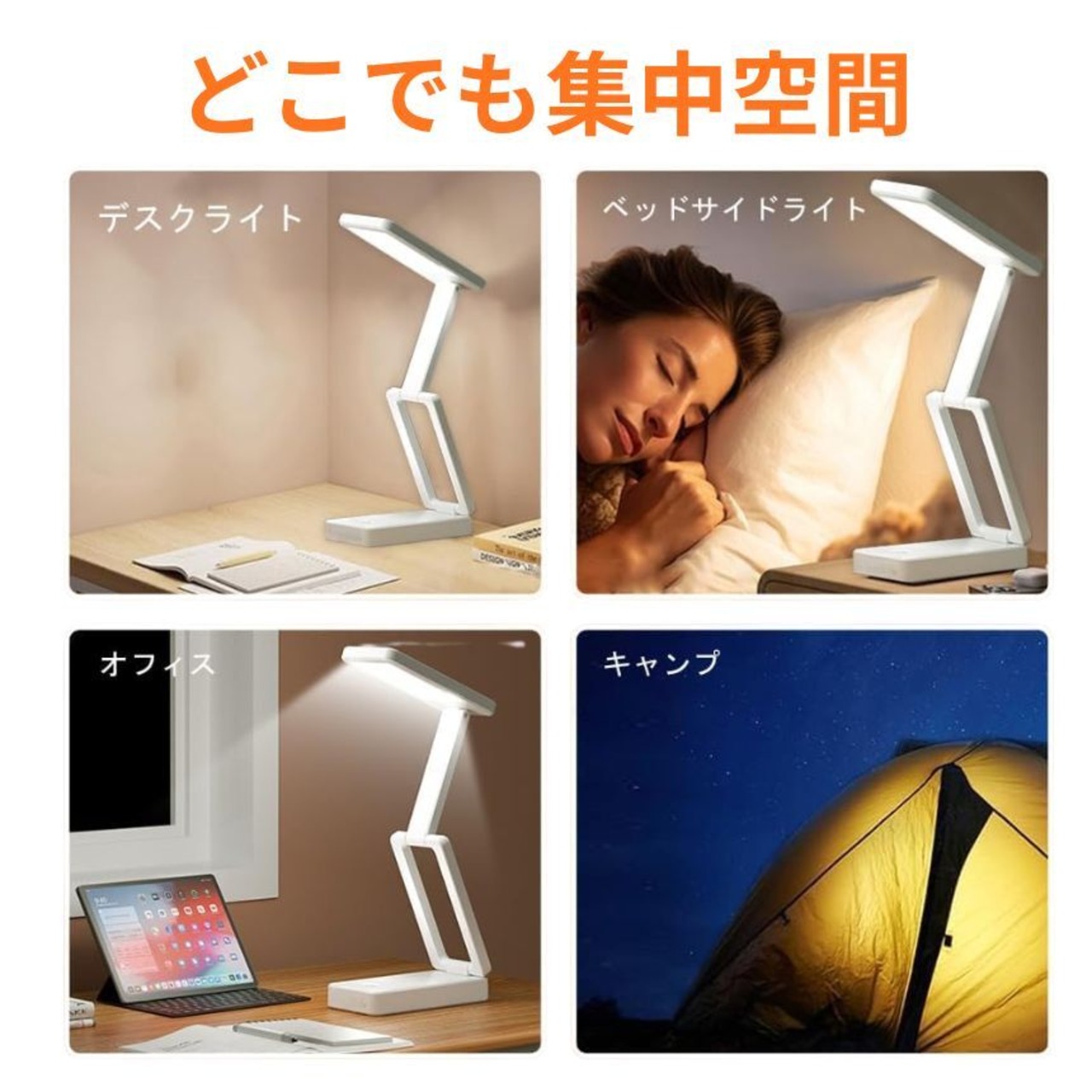 デスクライト コードレス 折りたたみ 折り畳み USB 充電式 テーブルランプ デスクスタンド ライト 照明 間接照明 学習机 おしゃれ 充電式 持ち運び LED 目に優しい 明るい 影ができにくい 明るさ調整 調光 調色 クリップ 子供 勉強 省スペース スタンドライト