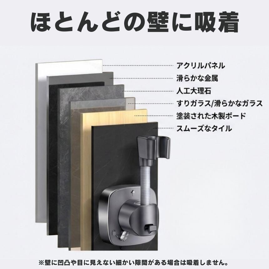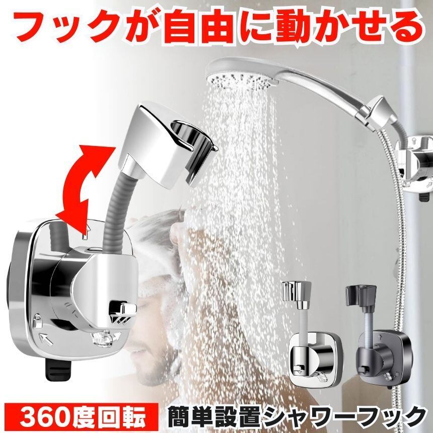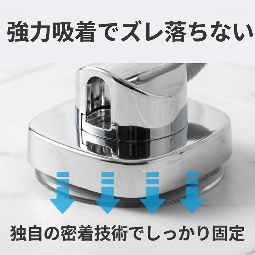 シャワーフック シャワー シャワーホルダー フック 吸盤 ラック ホルダー 交換用 穴あけ不要 取り付け 交換 風呂 シャワールーム おしゃれ 壁 バス ウォール 浴室 浴槽 キッチン トイレ 洗面所 お風呂 角度調整 自由 角度 フレキシブル 吸着 簡単 取り付け