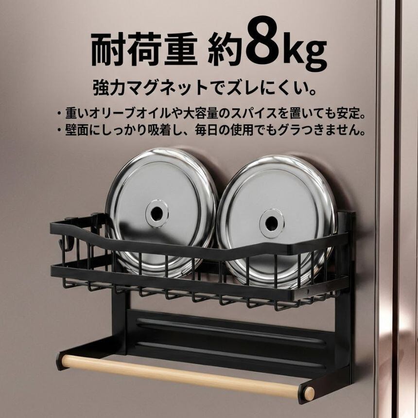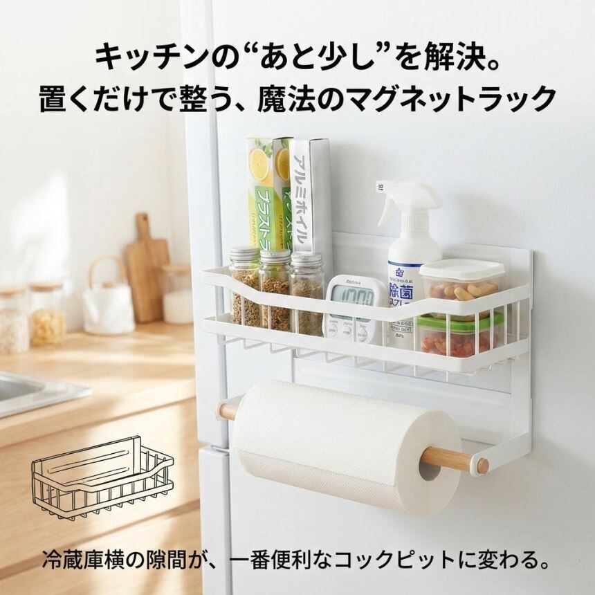 一般的な一段式マグネットラックは、「置くだけ」で終わりがち。