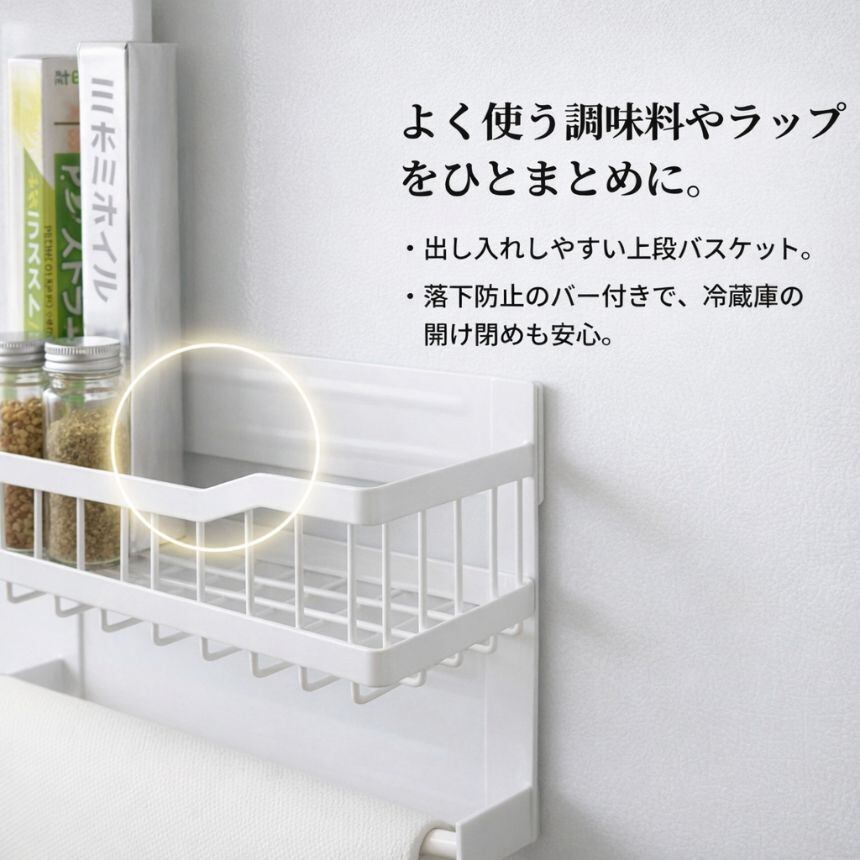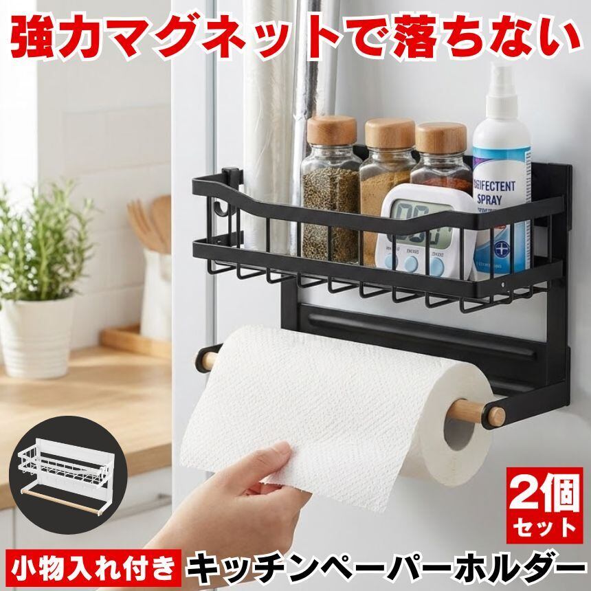 キッチンペーパーホルダー マグネット ラップホルダー 冷蔵庫 磁石 収納 キッチンペーパー スパイスラック マグネット収納 キッチン下収納 調味料ラック 砂糖 塩 容器 ラック 洗濯機 レンジ キッチン 電子レンジ キッチン収納 サイド 棚 整理 小物入れ