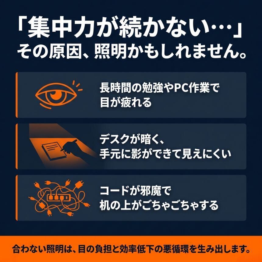 「机の上が暗くて文字が見づらい…」