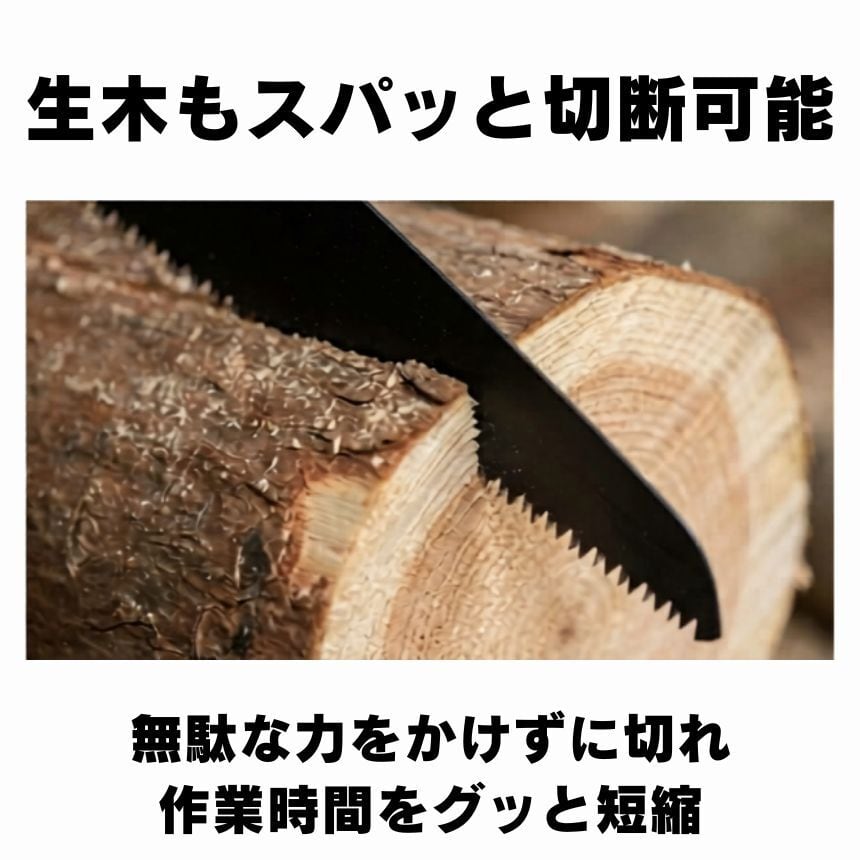 本商品は、生木の切断にも対応した設計。