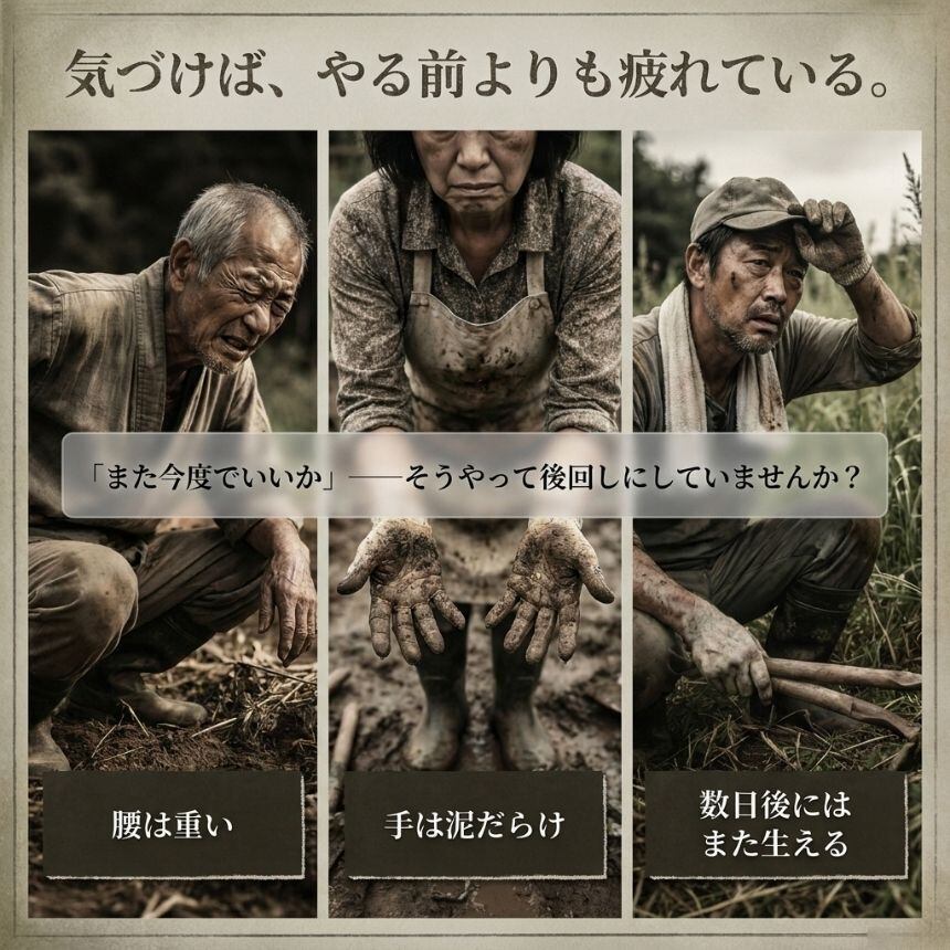 数日後には同じ場所からひょっこり顔を出す雑草。
