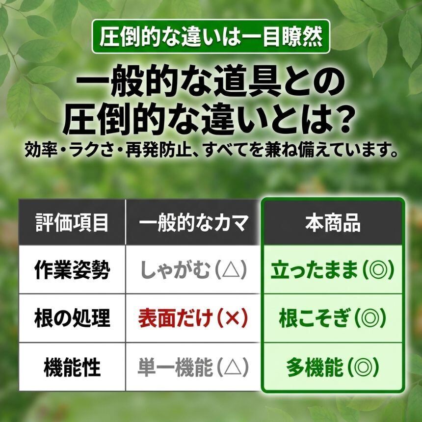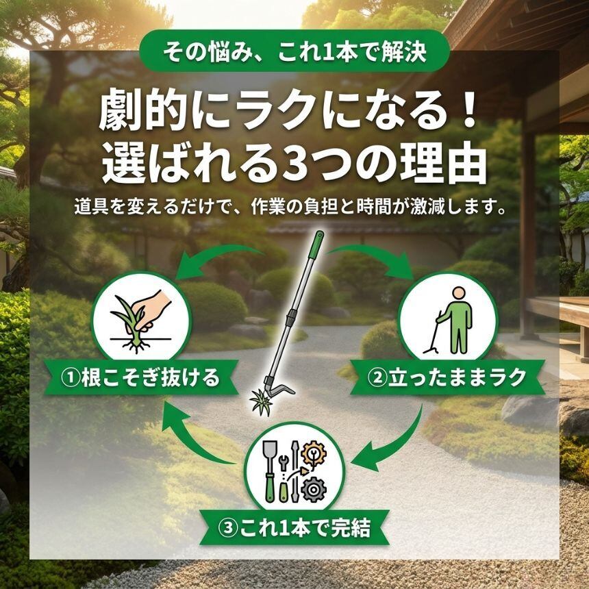 つまり、効率・時短・負担軽減をすべて実現した新しい草取り道具です。
