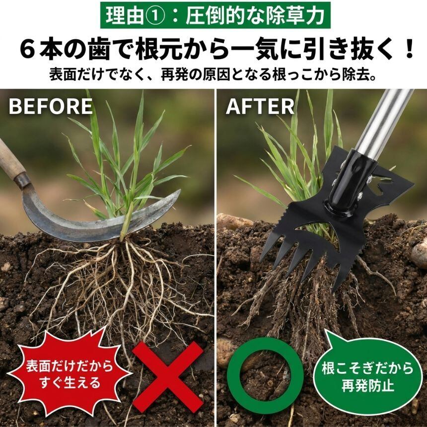 ■根こそぎ除草できる6本歯構造【雑草対策の決定版】