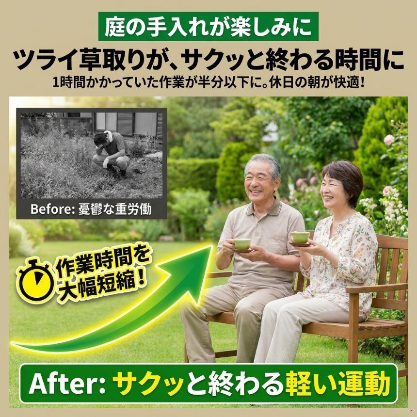 この道具を使えば、短時間で効率よく除草でき、作業負担を大幅に軽減できます。