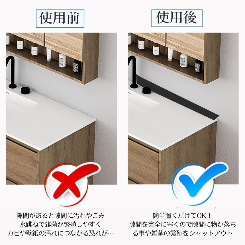 隙間パッキン 洗面台 隙間パテ すき間パッキン 隙間 パッキン すきま 隙間埋め 隙間ガード すき間 隙間テープ テープ 洗面 ベッド コンロ キッチン 洗濯機横 カビ 水垢 水跳ね 水はね 汚れ ゴミ 防止 ホワイト ブラック 透明